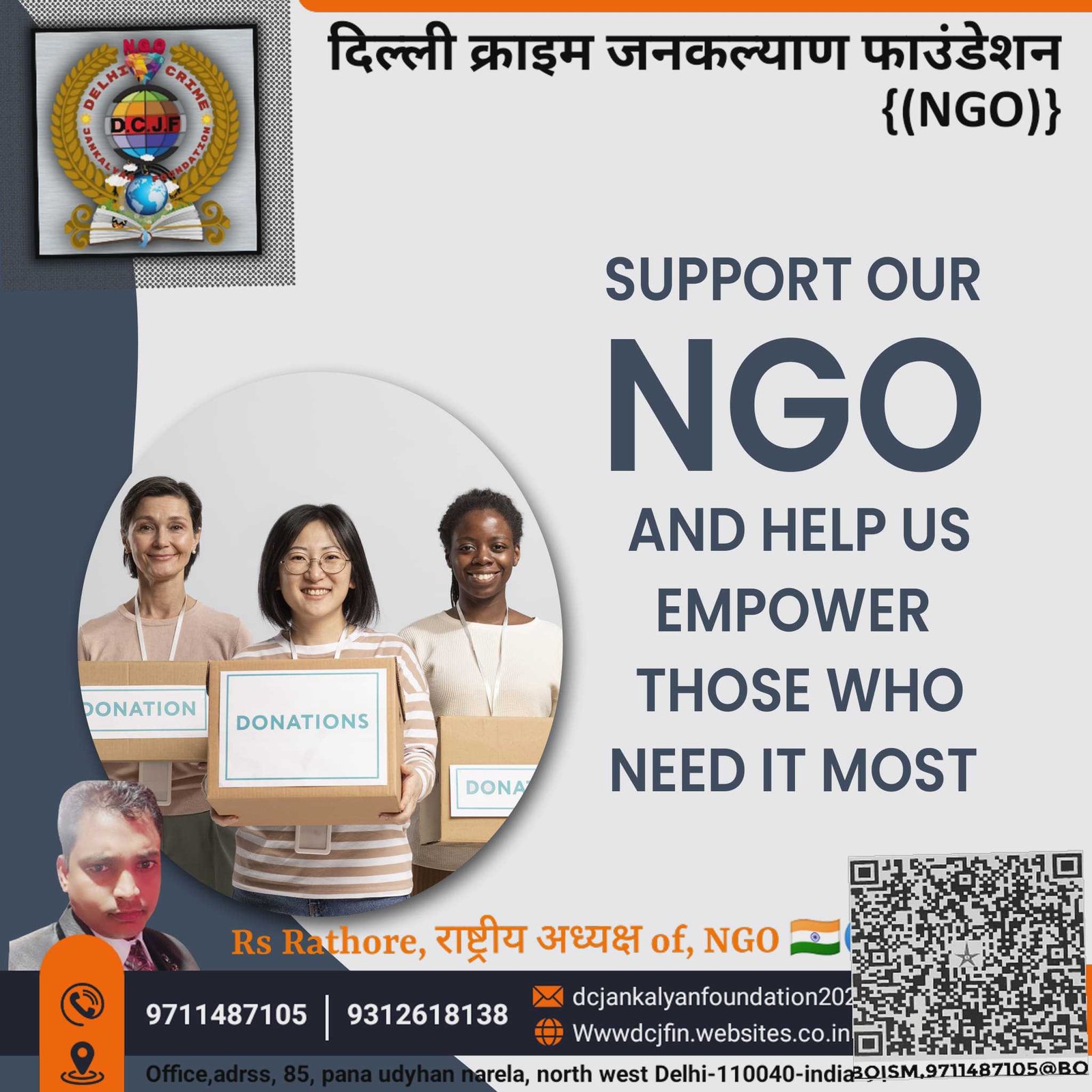 🛑 दिल्ली क्राइम जनकल्याण फाउंडेशन (DCJF) NGO (राष्ट्रीय स्तर पर सामाजिक सेवा एवं विकास अभियान) 🔷 नवीनतम समाचार एवं संगठन की गतिविधियाँ – हिंदी में 🙏 नमस्कार साथियों, Delhi Crime Jankalyan Foundation (DCJF) देशभर में समाज कल्याण, शिक्षा, स्वास्थ्य, कौशल विकास, महिला सशक्तिकरण और रोजगार सहायता हेतु सक्रिय है। वर्तमान में NGO की गतिविधियाँ निम्नलिखित क्षेत्रों में संचालित हो रही हैं: --- 🔸 टीम और संगठनात्मक संरचना: राष्ट्रीय अध्यक्ष: श्री आर.एस. राठौर राज्य, जिला एवं ब्लॉक स्तर पर कोऑर्डिनेटर नियुक्त वॉलंटियर्स टीम – पूरे भारत में सक्रिय --- 🛠️ मुख्य सामाजिक कार्य और अभियान: ✅ शिक्षा एवं जन-जागरूकता: गरीब व असहाय बच्चों हेतु फ्री कोचिंग महिला शिक्षा एवं dropout बच्चों के लिए विशेष योजना डिजिटल क्लासेस व मोबाइल शिक्षा वाहन ✅ कौशल विकास प्रशिक्षण केंद्र: ट्रेनिंग: सिलाई, कंप्यूटर, ब्यूटीशियन, टेली कॉलिंग आदि युवाओं को रोजगारोन्मुखी प्रशिक्षण महिलाएं और लड़कियां आत्मनिर्भर बनें – यही लक्ष्य ✅ स्वास्थ्य, स्वच्छता व पोषण कार्यक्रम: फ्री मेडिकल कैंप, महिला स्वास्थ्य जागरूकता स्वच्छता और पोषण जागरूकता सेशन रक्तदान व नशा मुक्ति अभियान ✅ रोजगार सहयोग एवं महिला सशक्तिकरण: स्वयं सहायता समूहों के माध्यम से रोजगार युवाओं के लिए माइक्रो-बिजनेस ट्रेनिंग हर जिले में रोजगार मेलों में भागीदारी --- 📢 अभियान और राष्ट्रीय कार्यक्रम: "बात से बदलाव" अभियान बाल श्रम और महिला हिंसा के खिलाफ आवाज संविधान और मानवाधिकार पर प्रशिक्षण युवाओं के लिए मोटिवेशनल वर्कशॉप्स 📍 ऑफिस पता एवं संपर्क जानकारी (Updated): 📌 ऑफिस एड्रेस: 561, गांव पाना उद्यान, नरेला, दिल्ली – 110040, भारत 📞 संपर्क: +91 9711487105 📧 ईमेल: dcjankalyanfoundation2023@gmail.com 🌐 पंजीकरण संख्या: DL/24/2023 🧾 PAN: AAETD3136A / 80G: F20231 | 12A: F20221 🆔 NITI Aayog ID: DL/2023/0339033 🏦 Bank: Bank of India, A/C No: 601420110000542 💻 Website: www.dcjfskilldevelopmentngo.in (यदि उपलब्ध हो) 💬 संदेश: 👉 “हर हाथ को हुनर, हर युवा को अवसर” 👉 “राष्ट्र निर्माण में हम सबका योगदान ज़रूरी है” 👉 “आप जुड़ें – समाज बदलें”