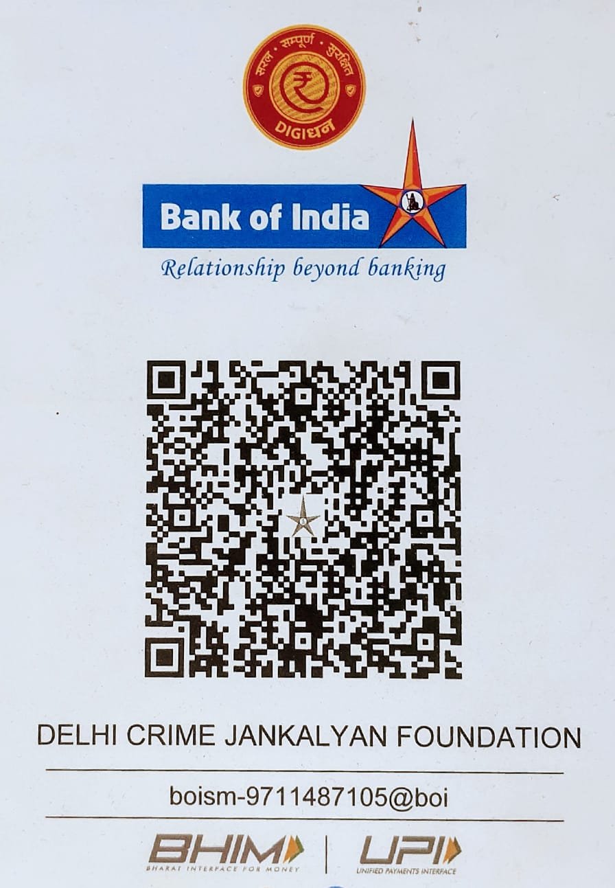 Bank Name : Bank Of India Holder Name : Delhi Crime Jankalyan Foundation Account No. : 601420110000542 IFSC Code : BKID0006014 Branch : Narela